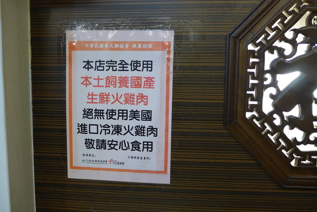壁の張り紙は、誇らしげに「台湾で飼育した火雞肉限定」と謳っています。