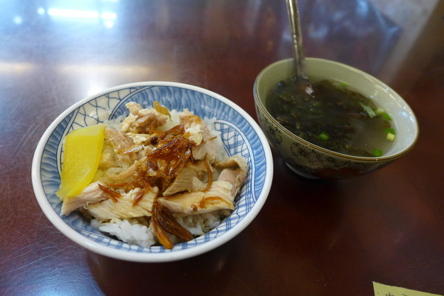 さて、広いテーブルに腰かけて「火雞肉飯」(小・TWD20)を頼みます。