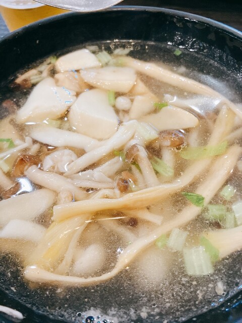 海鮮スープは昼間食べた魚の皮だけが具材のスープで少し食傷気味になりましたので避けてヘルシーキノコスープにします。