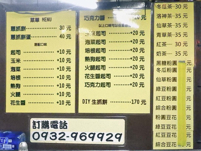 メニューには,葱抓餅(ネギパンケーキ)類と,豆花(豆腐デザート)類,粉圓(タピオカ)類,冷たい飲み物類がありました.値段は,かなり手頃です.