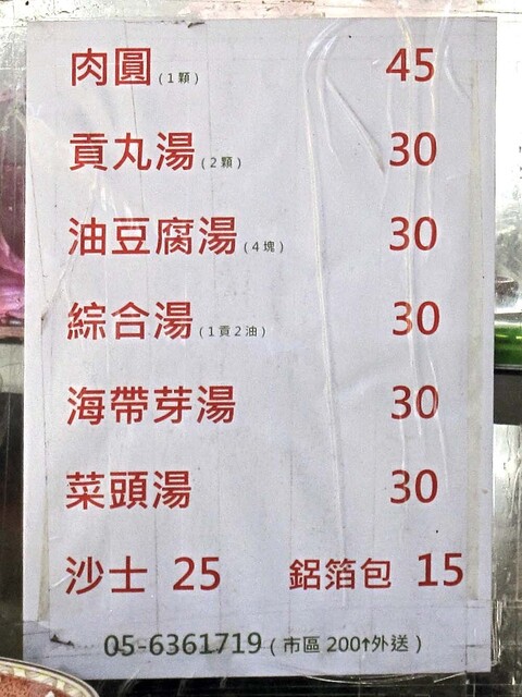 2人でおじゃまして,「肉圓 45台湾元」×2と,「貢丸湯(肉団子スープ)30台湾元」を注文しました(1台湾元=約5円;2026年1月現在).