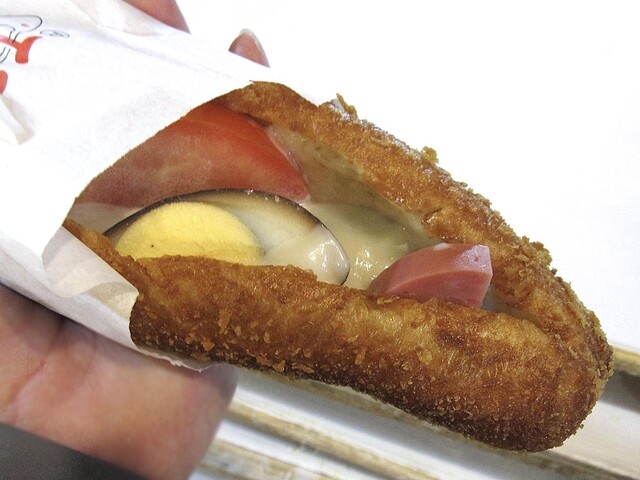 ちなみに,『三明治』の和訳は『サンドイッチ』です.でも,こちらの『三明治』は,『サンドイッチ』というよりも『揚げパンドッグ』ですね.