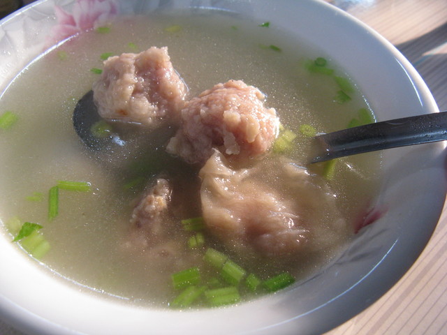 此処の名物は、豚肉を叩いて延ばして極薄にして、サツマイモ粉を塗した皮で包む、肉燕という変わり種のワンタンなのだと。