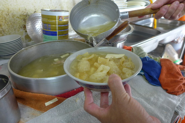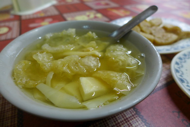 そして、合間に啜るスープ(TWD15)が、ご当地らしい「肉皮」を戻し、筍とあっさり仕上げたもの。