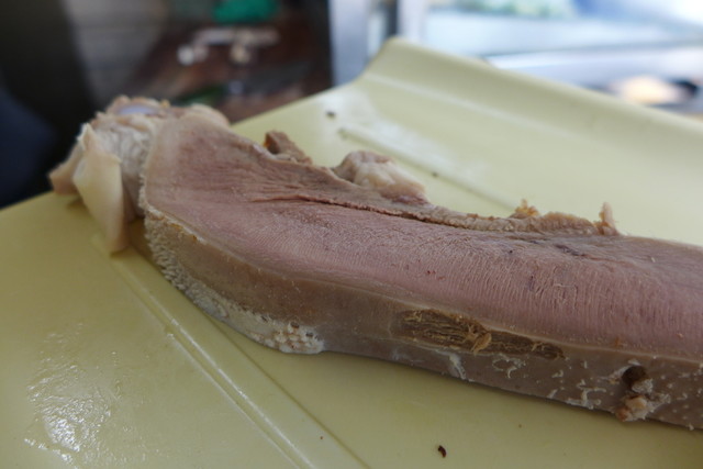 日本の油揚げみたいな感覚で汁に入れるのでしょうが、食感には適度なコシがあって、豚皮という先入観よりも、実にあっさり。