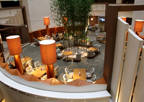 食器の音、ナイフ・フォークの音が吹き抜けになっている35階の天井にぶつかり、館内に響く様が良い感じです