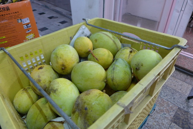 時季的に、真夏というと愛文芒果(アップルマンゴー)はそろそろ終わりなのだけれど、此処のご主人の実家が、まさに玉井の農園なのだそうで、店内の籠には、山盛りの愛文芒果が。