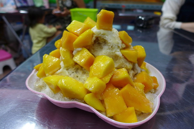 愛娘をあやしながらお店を切り盛りする奥さんが、ニコニコしながら運んでくれた、この「芒果雪花冰+芒果」。