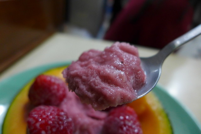 さて、この哈密瓜の半割+シャーベット+草苺(TWD230)というのにチャレンジしてみます。