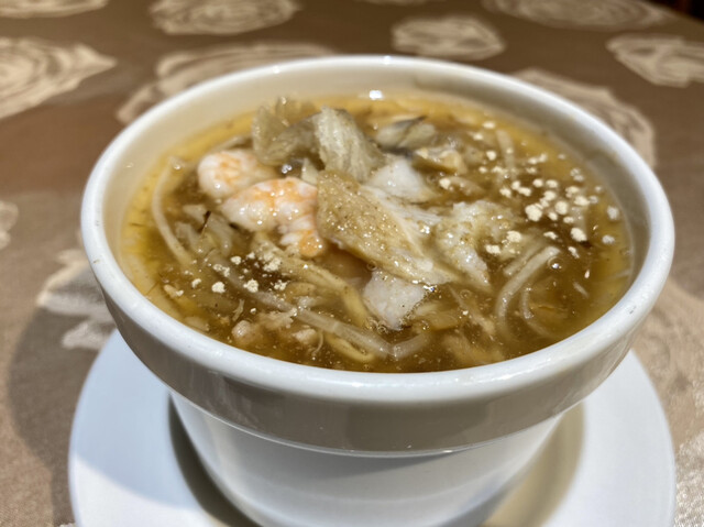 ふかひれ風味のカニとえのきのスープをオーダーした。