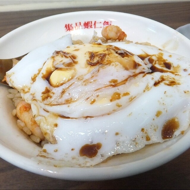 で、これにオンザライスする目的で注文したのが煎鴨蛋。鴨の玉子の目玉焼きです。半熟にしてもらいました。醤油はあらかじめかけてありました。台湾の醤油ってあんまり塩気や味がないんですよね。なので、いっぱいかかってるけれど、そんなにしょっぱくないです。
