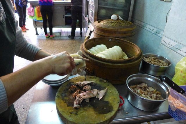 この割包、台湾バーガーなどという喩えがあるくらいで、ふかふかに蒸し上げた手捏ね生地(本場中華まんじゅうの生地)で、各種具材を挟みこむもの。