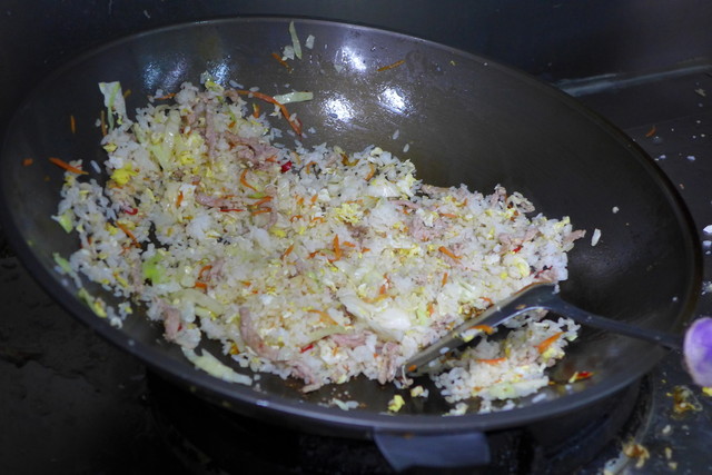 • 独家紹興炒飯 - 勢いよく煽り、紹興酒を振りかけます。