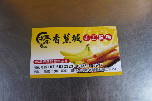 名産のバナナを使ったロールクッキーをその場で焼きながら、冷たいバナナ紅茶とともに商うお店「月亮」さんへ。