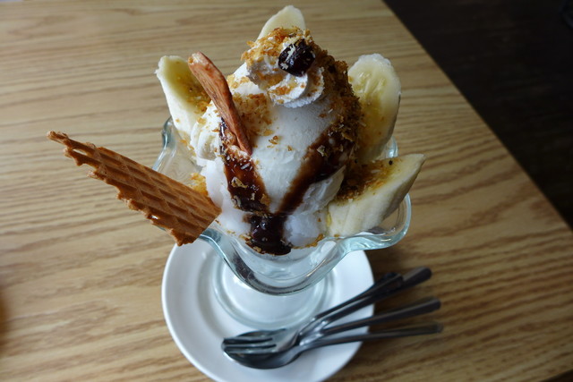 バナナのアイスクリームとパフェの美味しい、旗山のファミリーレストラン。
