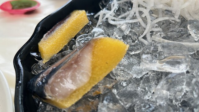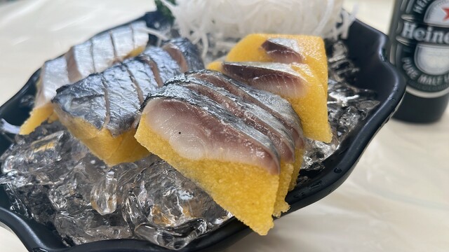 おもしろいのは、酢で締めたサバっぽい魚と一体化している点です。