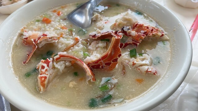 ぶつ切りにして、茹でた料理と、お粥に入った料理の2種類出てきます。