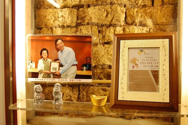 日本の統治下であった 昭和17年 ( 1942年 ) 頃、このお店の現オーナー ( 写真中央の3人の人物の、一番左の老婦人 ) のお兄さんが、日本の軍隊に召集され、出征するに当たり、撮影した記念写真が掲載されています。