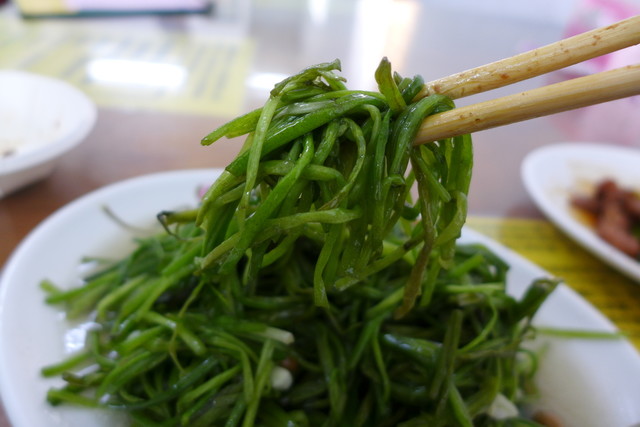 細い茎状の青菜の炒めで、しゃきしゃきの歯触りがたまりません。