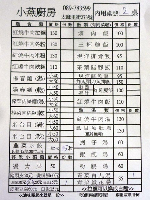 なお,注文は,メニューが記された注文票に数量を記入し,スタッフに渡すシステムです.注文票は漢字と数字のみですが,何となくわかると思いますよ.
