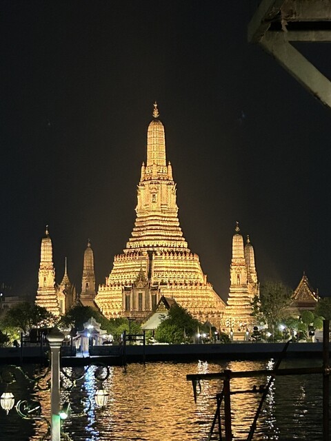 川を挟んだ向こう側にはライトアップされたワットアルン。