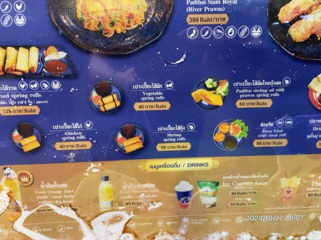 今回頼んだのは海老添えのパッタイでお値段150バーツほど。