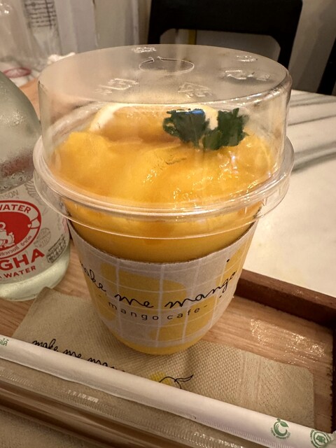 行ってみたかったマンゴー専門店。3時のおやつに訪問。猛暑の中散歩したので炭酸水頼んだらめちゃくちゃ強炭酸でびっくり。生き返った。マンゴー三昧のセットとマンゴーシェイクを注文し、クールダウン。甘じょっぱ...
