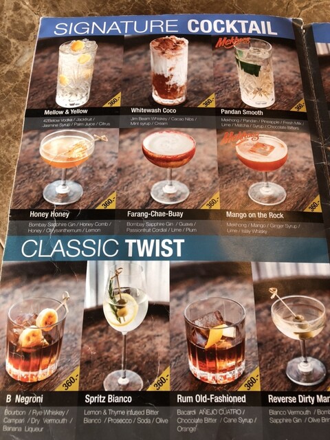 メニューは色々ありますが、ネットで見てた評判メニュー、キャベツのナンプラー炒め、海老のチャーハン、豚肉とチャムアンというハーブの煮込みを注文です。あと、カクテルも美味しそうだったのだカクテルと。