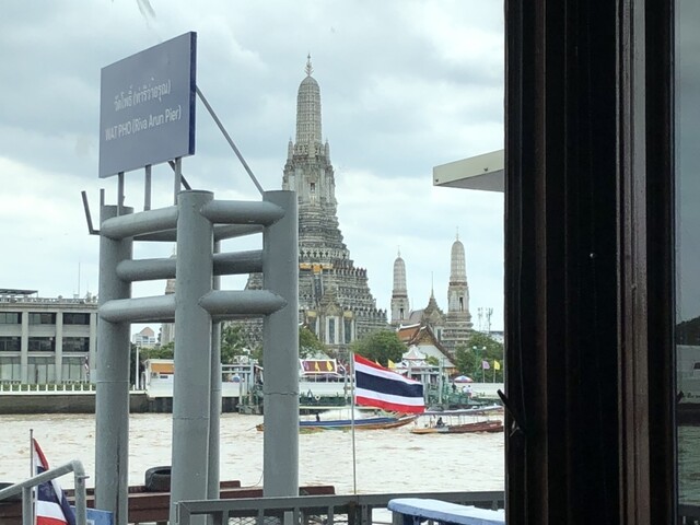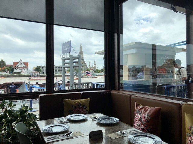 タイバンコク観光でお寺巡り、ワットポー、ワットプラケオ、王宮を巡って、最後に対岸のワットアルンに向かう前にランチは、コチラのお店に。対岸にワットアルンが見えるレストラン、夜のライトアップが綺麗というこ...