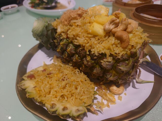 パイナップルに入ったナッツとパイナップルの炒飯みたいなもの