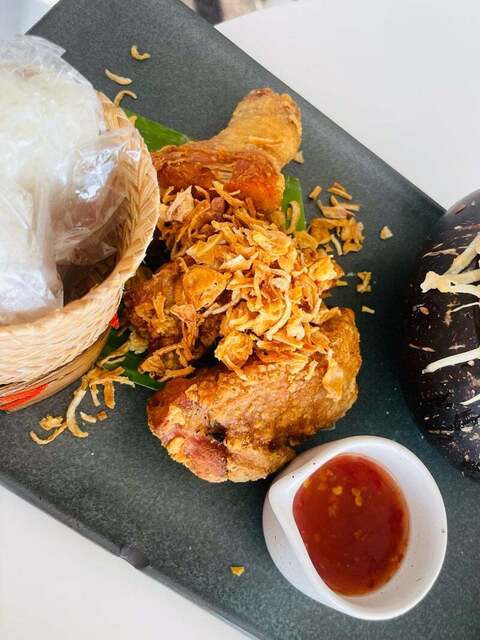 そしてソムタムサラダとガイヤーンとモチ米のセット。