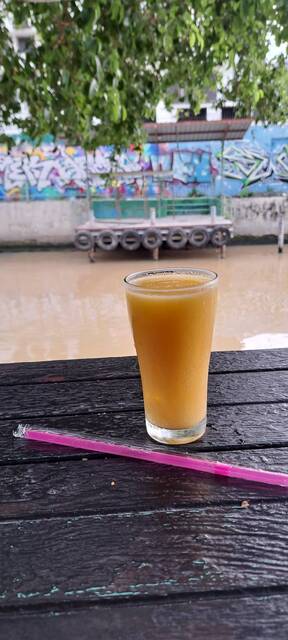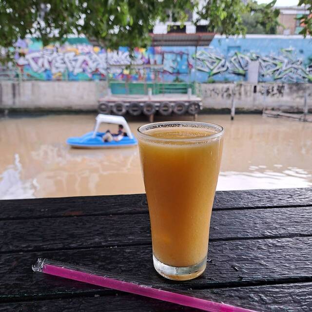 今回訪れたこちらのカフェに沿った川辺も水の色がカフェオレ色になっていましたが、ボートに乗る観光客?の方々が楽しんでいたりで普段通りの明るい光景ではありました(^_^)