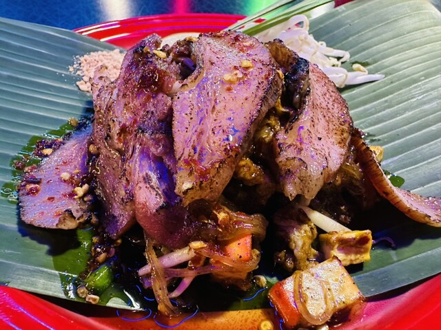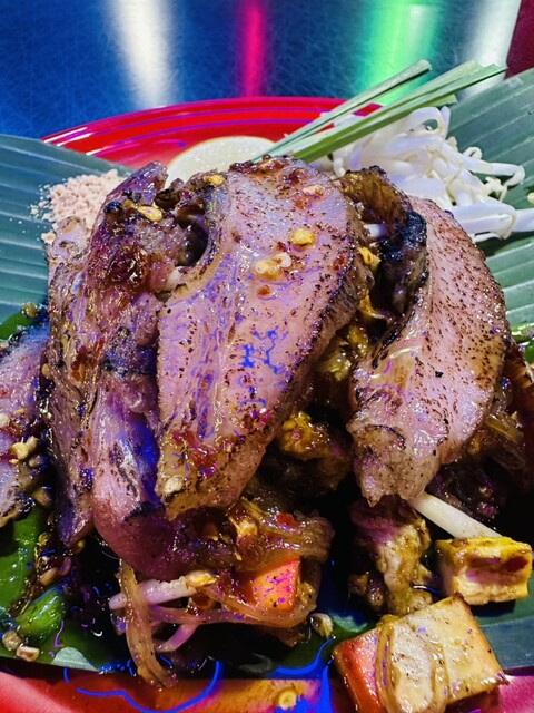 調子に乗ってもう一つ追加したのが「#ムークローブ」がドーンと盛られたパッタイ(500バーツ)