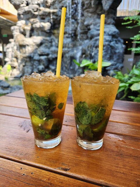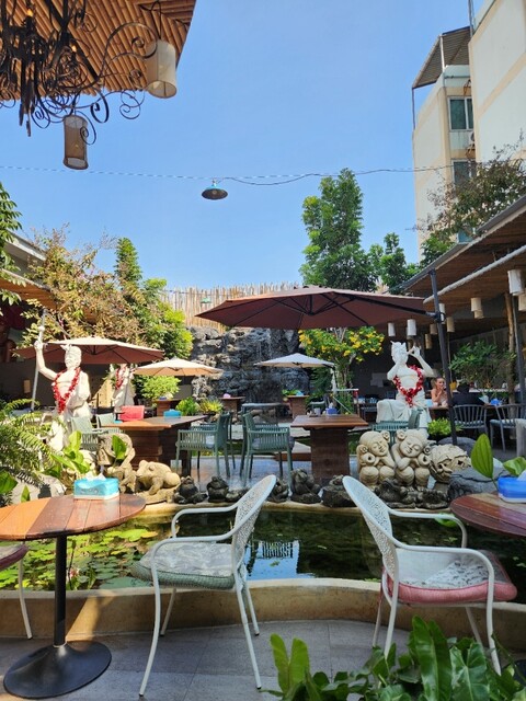 ランブトリ通りにあるリゾート地のようなレストラン。滝や池もあり、カラフルなソファー席やインテリアなど、どこを取ってもフォトジェニックな空間で写真を沢...