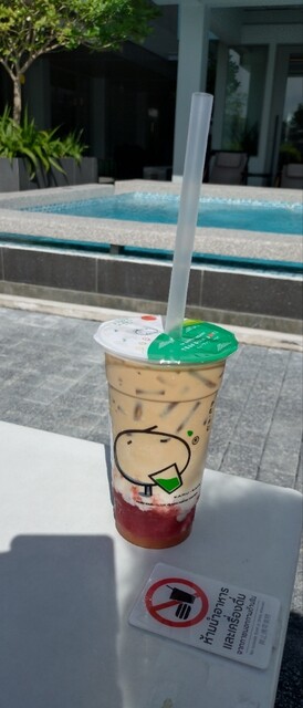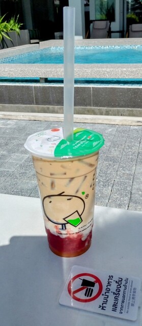 日本円に換算するとタピオカが入ったイチゴ味のタイミルクティーは、443円程度。円安タイバーツ高が続いています。正直言って、バンコクでは外食が安かった旨味が弱くなってきていますねぇ(^o^;)