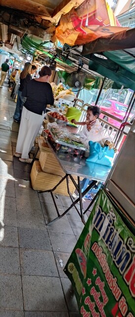 帰国前に最後のバンコク街歩き。チャオプラヤー川をボートで渡り、来たことが無かったワンラン市場へ。ほぼ外国人観光客がいなくて、ローカルな感じが良いですね。まさに地元密着って感じです(◍•ᴗ•◍) 喉が渇いたのでコチラで小休止。店員さん1名。英語メニュー有り _φ(・_・