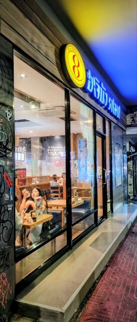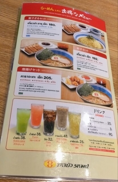 この日の夕食は雨がかなり降っていたので、滞在しているリゾートホテルから近い、コチラで取りました。実は、日本国内の店舗は訪問したことがなく、以前Ⓡ友さんにお土産で貰って食べたのが初8番らーめんでした。冷房が効いていて快適な店内。店員さんはもちろん全員がタイの方ですが、英語は普通に通じます。日本語メニューもあり _φ(・_・