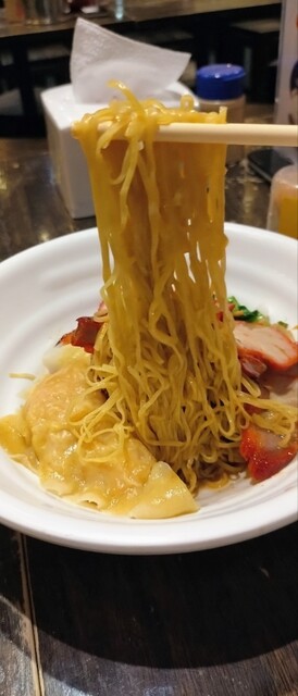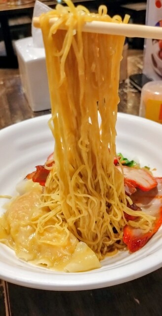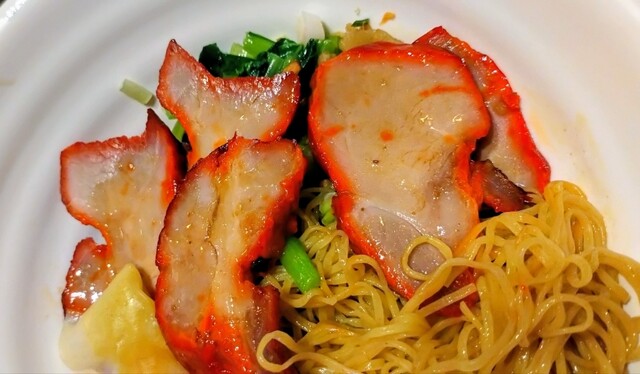 Egg Noodles with Jumbo Shrimp Wontons top with BBQ. Pork topped 95B