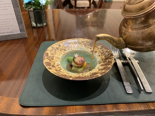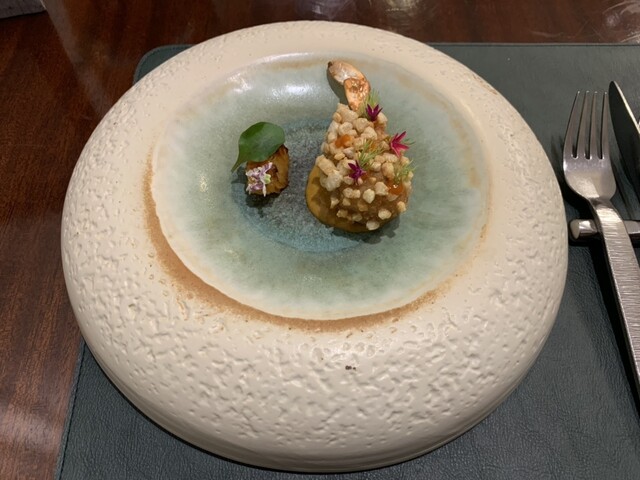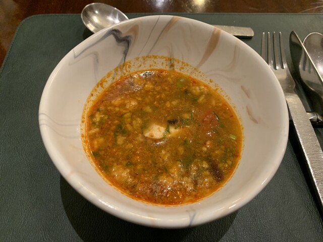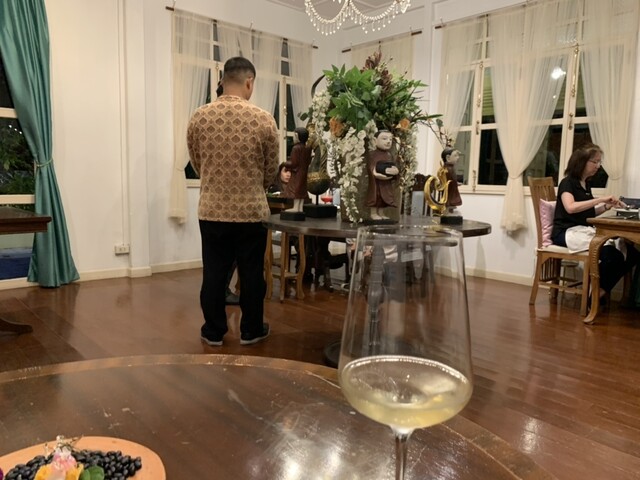 市内北西の公共交通機関ではやや行きにくいエリアの星付店。古い木造住宅をリノベーション、伝統的な高級タイ料理。モンスーンシーズンテイスティングメニュー、苦手なトムヤンクン、揚げた米を天かす状に入れられて比較的食べやすい。お代わりしたら頭皮発汗、舌痺れ。後は辛くはないですが、物量多くお腹パンパン。