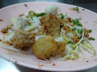 センヤイ=幅広麺ヘーン=汁なしルークチン=団子プラー=魚。