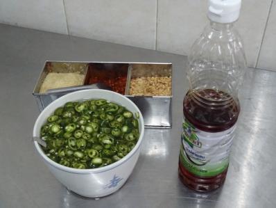 テーブルの上には、ナンプラーと、青唐辛子の酢漬け。