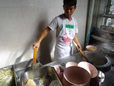 注文は、まず麺をバーミー(中華麺)、センヤイ(きし麺状の米麺)、センレック(超幅広の米麺)からチョイス。