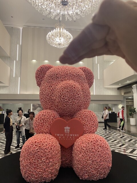 本日はVELTRAツアーの参加日。旅の楽しみの一つであるホテル朝食ビュッフェの時間の前にフロント前に集合。途中のパーキングにあるセブンイレブンでパンの購入を試みるも、少額ではクレカは不可と言われ断念。家族よりパンを分けてもらい空腹をしのぐ。眼前を電車が横切るメークロン市場。ダムヌンサドゥアック水上マーケットを楽しんだ後、こちらのホテルに到着。ツアーでの昼食なのでタイの屋台風を想像していたので、こちらでよろしのでしょうか?と思っていると、ツアーガイドさんから1時間の滞在時間を告げられる。そうと決まればホテルランチビッフェを楽しみましょう。まず、せっかちな私でも一番食べたい物を食べ損なわないために、ビッフェ台を一周するルーチンがある。ルーチン後最初に伺ったのはカオマンガイ、麺類そしてフルーツ達。テーブルに着いて麺類のスープを頂く。美味しい。空腹に染み渡る。別の麺類も試したくなり、その場で麺・具を選び(ハンドサインでOK)、熱々のスープをいれてもらう。これがまたピリ辛でうま味たっぷいでおいしい。時間が1時間と限らてていたので、各料理の名前は確認しなかったものの、タイ・アジア風の料理はおおむね見た目ふくめて美味しかった。お寿司のコーナーもあったが、こちらの評価は控えよう。1時間の時間はあっという間に過ぎ、集合場所に行くとUFOキャッチャーが有り、中を覗くと一匹のシロクマと一瞬目が合った。これはチャレンジするしかない。これまでに数回しかUFOキャッチャーをやった事がなく、しかも景品を取ったことなどない。何も考えずにやったら一発でゲット。美味しいランチブッフェにシロクマのお土産。機会があればまた訪れてみたいです。