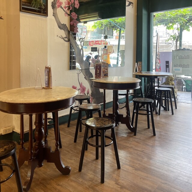 タイ旅行の備忘録。バンコクのチャイナタウンにある小さなカフェ。インスタで少し人気が上がってきています。室内はかわいいデザインの背の高いテーブル&チェアがインスタ人気が上がっています。