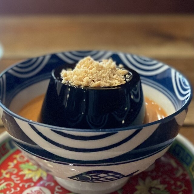 味は薄目のゼリーですが、周りのタイのミルクティをまわりに入れて一緒に食べることで味がします。