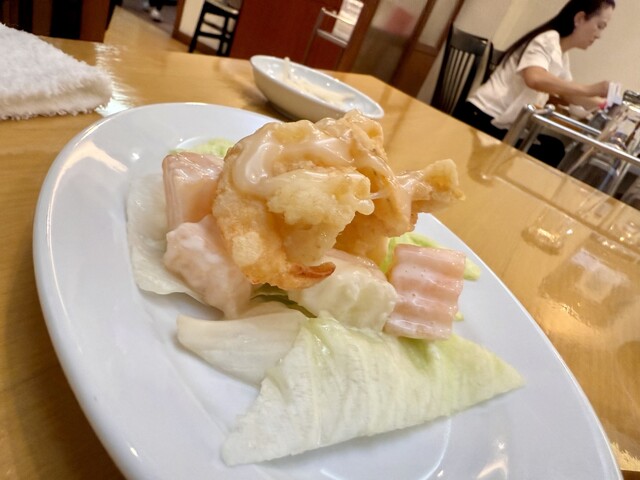 小さいですがフカヒレもゴロゴロ入っており、コースで頼んでも4〜5000円でフカヒレスープ、フカヒレ炒めレタス包み、エビの料理一品、空芯菜、鮑のスープご飯、デザートです。