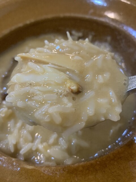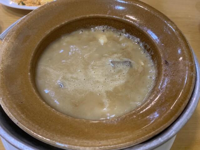 5のアワビ粥が、またまた茶色の豚骨のような濃厚スープに、アワビがたっぷり入った〆!