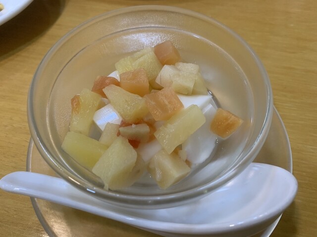 6. 雜果杏仁豆腐 Apricot kernel curd and fruits in syrup.