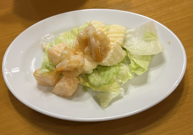 エビマヨには、りんごとパパイヤが合わさっています。果物×マヨネーズもいけますね。