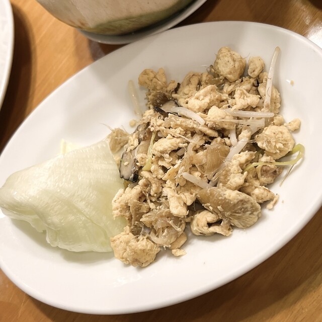 フカヒレ炒めと言われて出てきたものは、卵とじ?しっかりとフカヒレの塊も入っています。